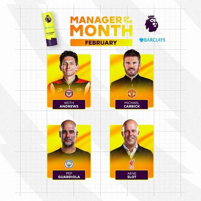 英超2月最佳主帥候選:卡里克、瓜迪奧拉、斯洛特、安德魯斯